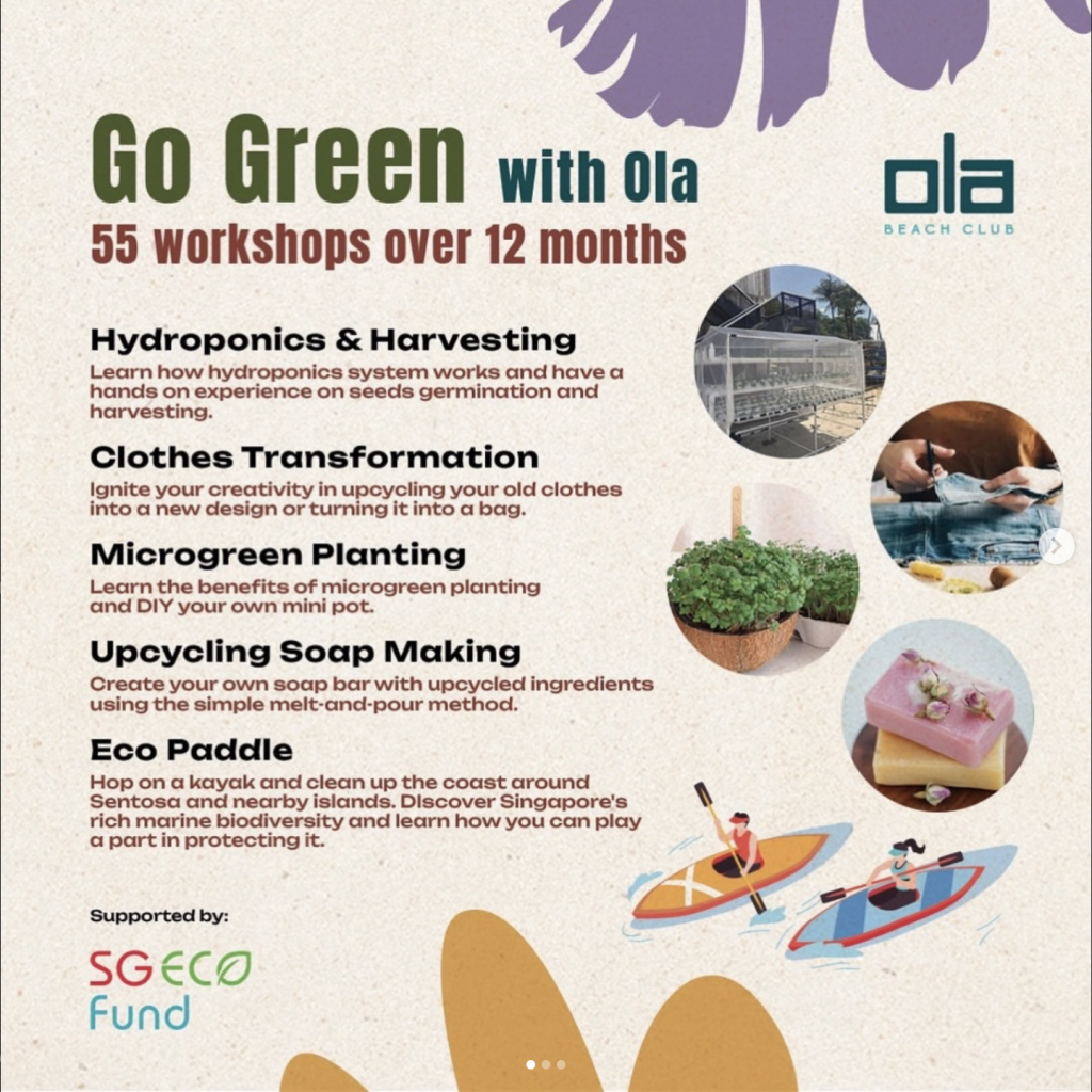 Be part of 55 fun and meaningful eco workshops throughout the year at Ola Beach Club. From upcycling and planting to paddling for the planet, discover simple ways for all ages to care for our environment together 🌿💚